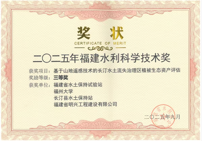 2025年福建水利科学技术奖获奖名单揭晓,数字中国研究院(福建)江洪老师的《基于山地遥感技术的长汀水土流失治理区植被生态资产评估》成果荣获三等奖。