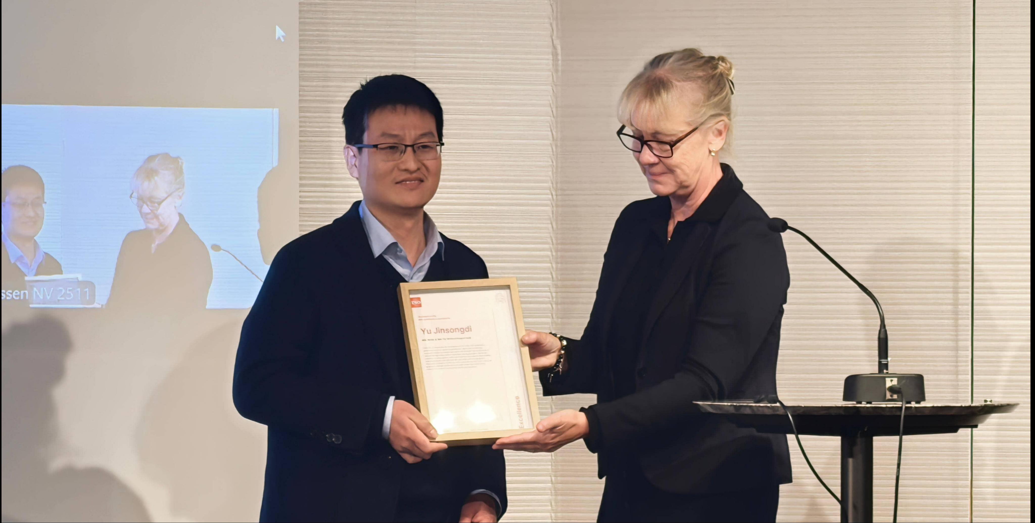 ISO/TC 211委员会主席Sandra Brantebäck女士给余劲松弟研究员颁奖