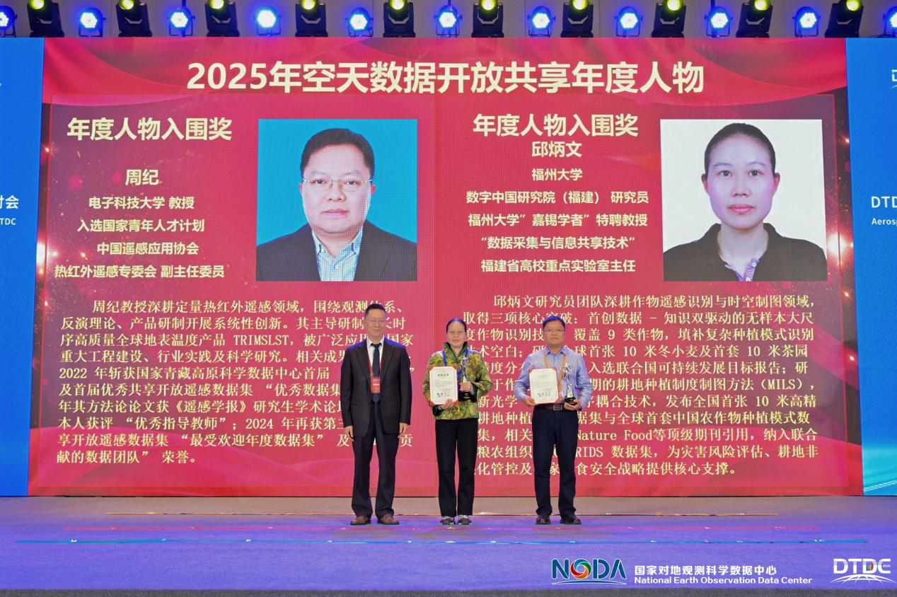 近日,2025年空天数据开放共享年度人物和空天数据工匠年度人物颁奖典礼在青岛举行,数字中国研究院(福建)邱炳文研究员获2025年“空天数据开放共享年度人物入围奖”。